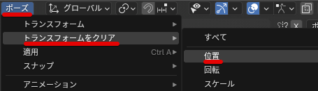 該当のフレームで「ポーズ」→「トランスフォームをクリア」→「位置」で位置の値だけ削除します。