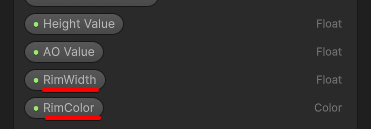 まず、プロパティにリムライトの幅用のFloatと光の色用のColorを追加します。